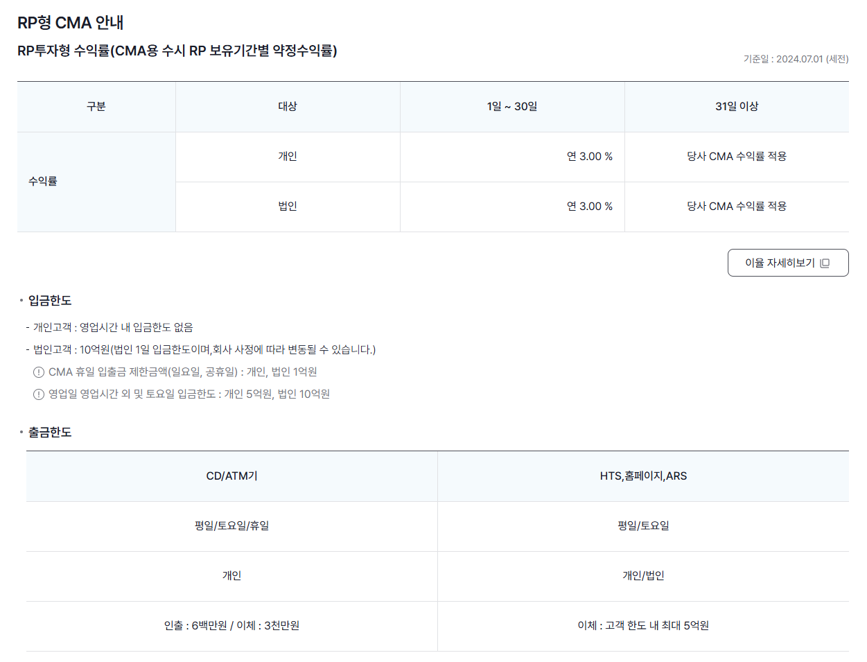 CMA 통장 단점