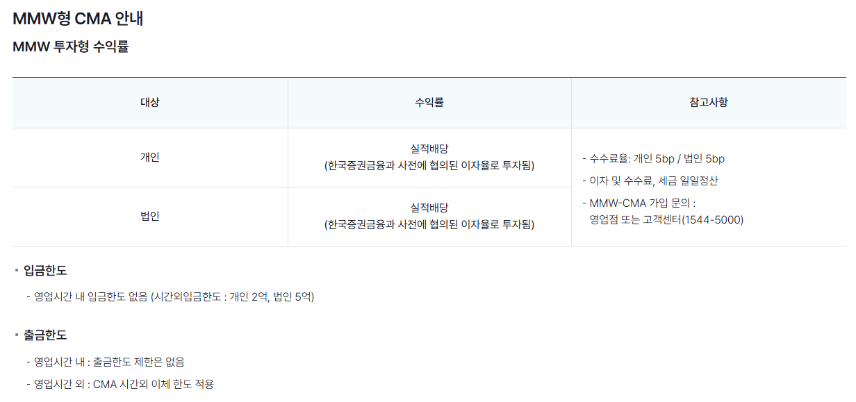 - 하나의 CMA계좌로 현금관리를 할 수 있다