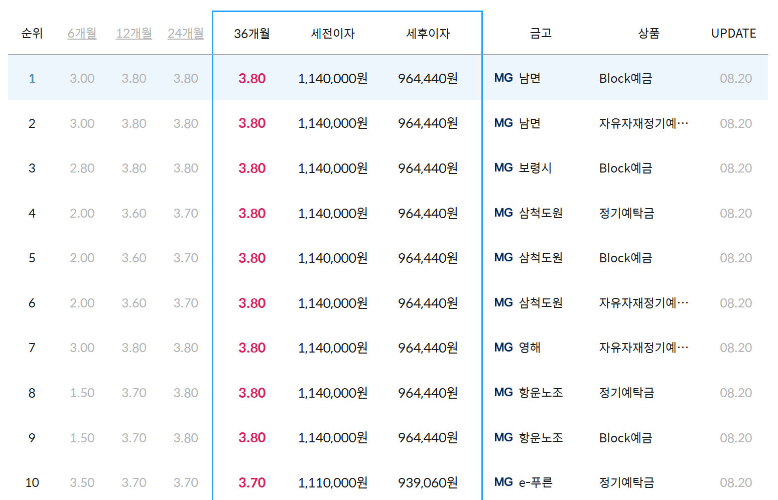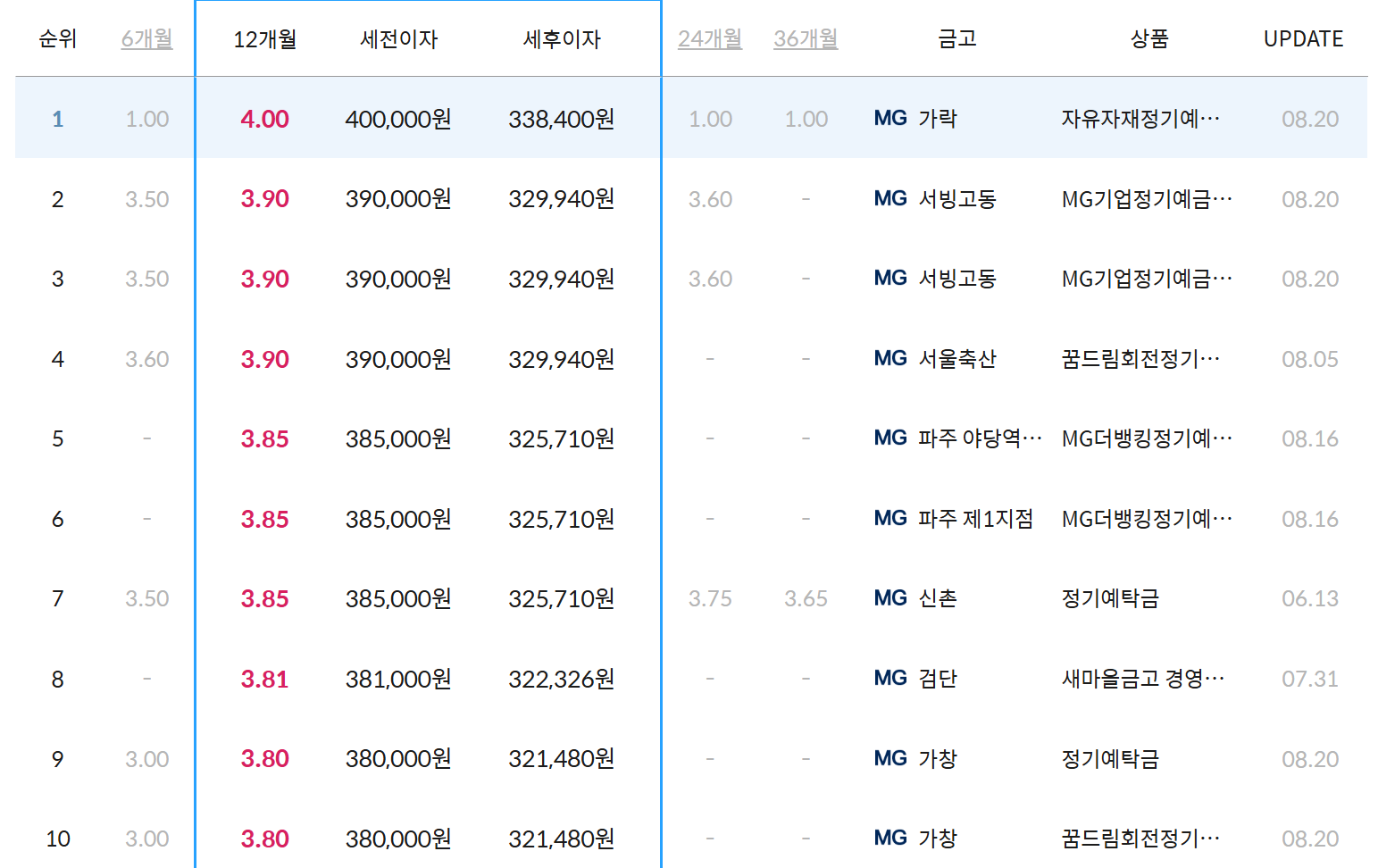 MG새마을금고 1년 정기예금 금리 이자 비교