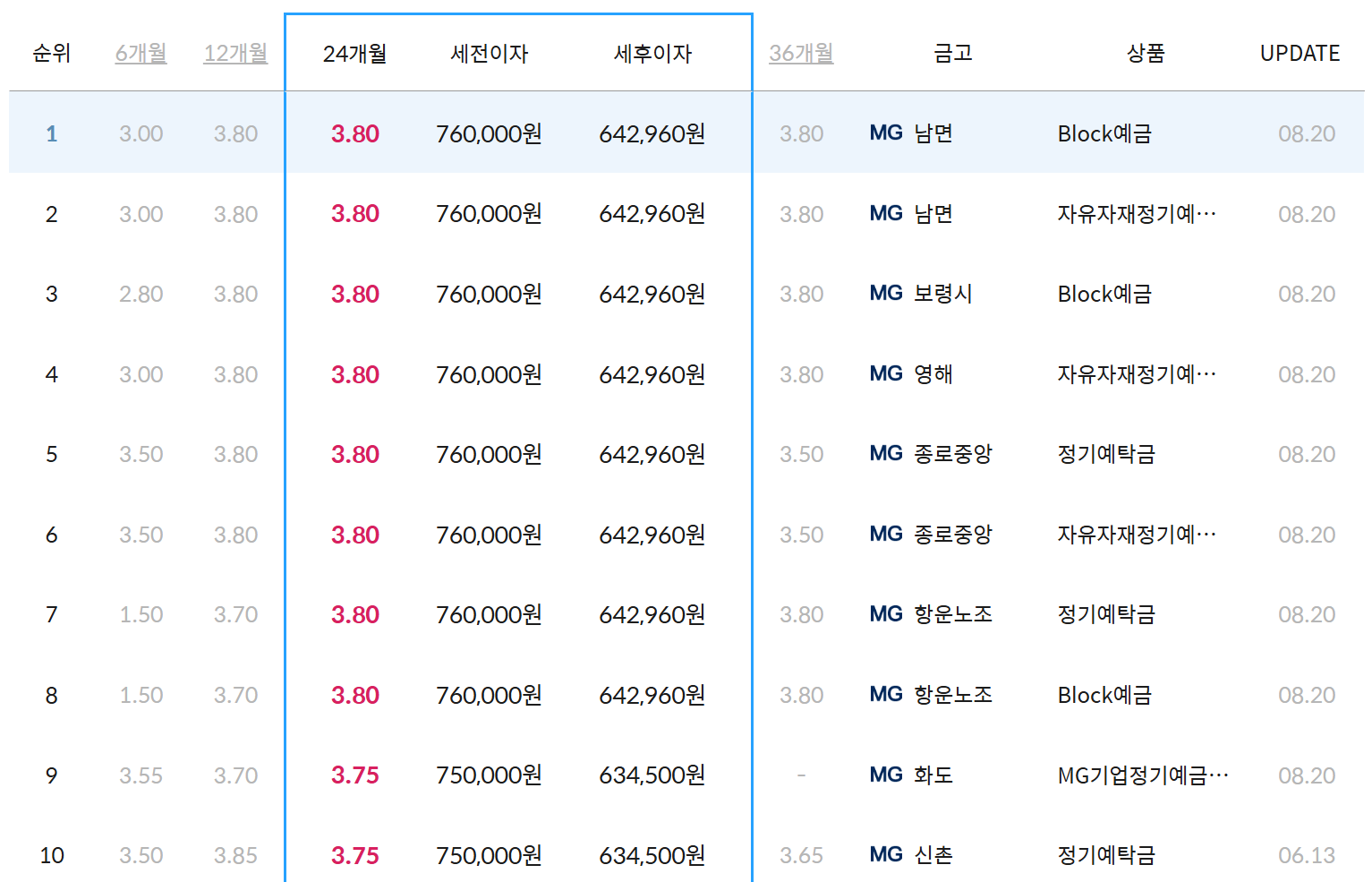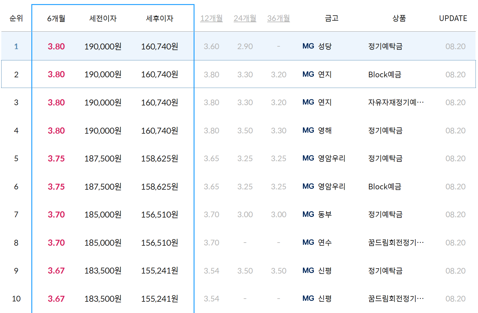 MG새마을금고 6개월 정기예금 금리 이자 비교